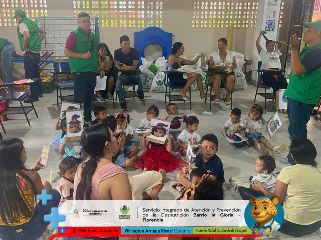 Esta importante jornada se desarrolló en el marco de la modalidad del Servicio Integrado de Atención y Prevención de la Desnutrición (SIAPD), implementada conjuntamente por el Instituto Colombiano de Bienestar Familiar – ICBF y la E.S.E. Fabio Jaramillo Londoño, reafirmando el compromiso institucional con el bienestar y la salud nutricional de los niños, niñas y sus familias .