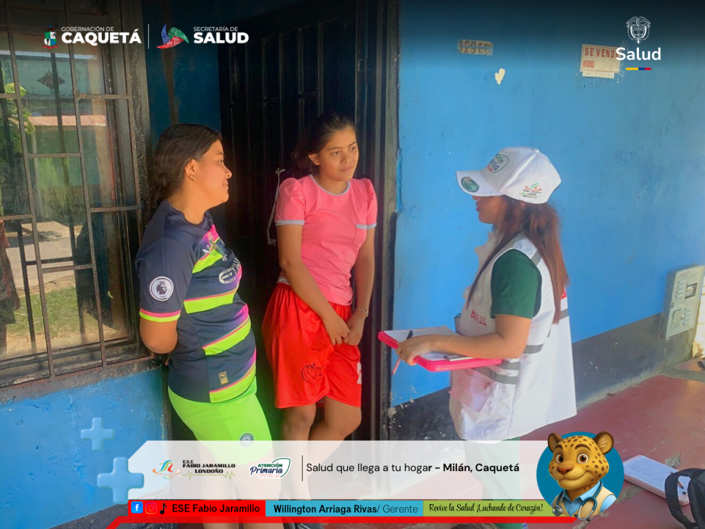 Desde la estrategia de Atención Primaria en Salud (APS), nuestro equipo de la ESE Fabio Jaramillo Londoño llegó hasta los hogares del municipio de Milán, llevando servicios de enfermería, medicina, psicología y vacunación, garantizando el acceso oportuno y humanizado a la atención en salud.