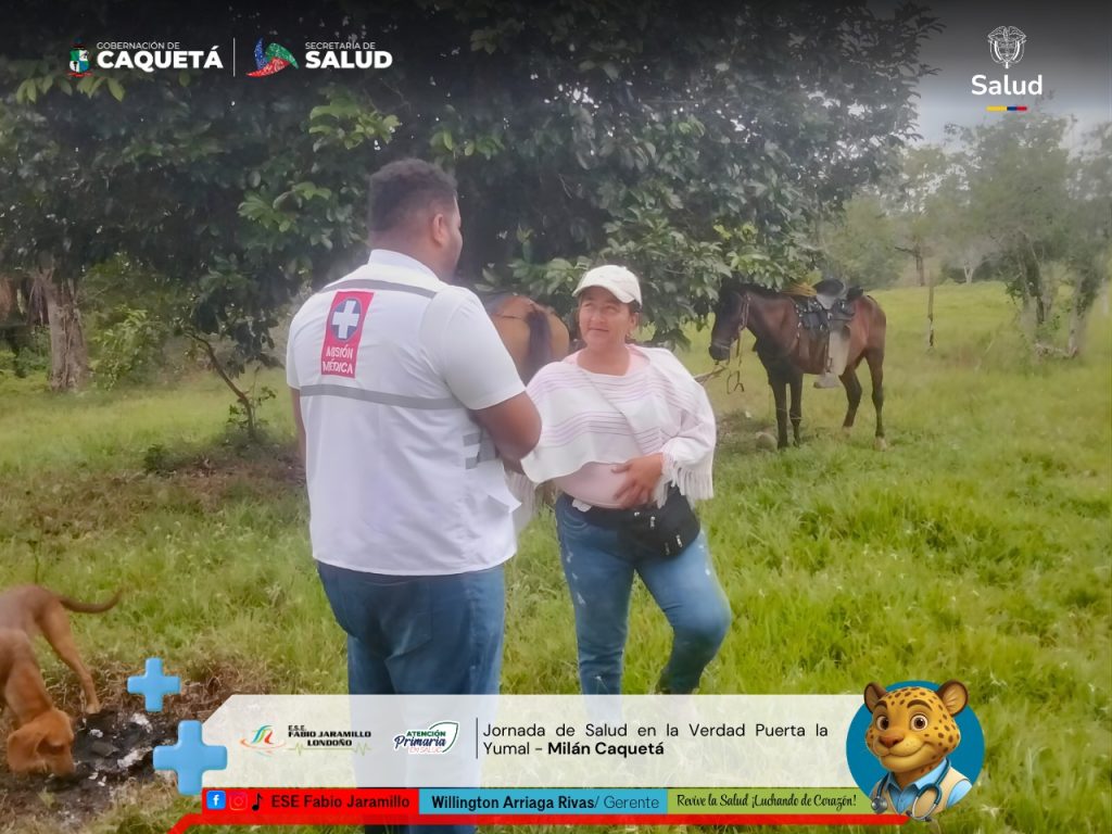 En la vereda La Yumal, municipio de Milán, Caquetá, acercamos los servicios de salud a la comunidad, trabajando desde tres pilares fundamentales: promoción y prevención, educación para la vida y atención domiciliaria con seguimiento permanente 🏥🌿