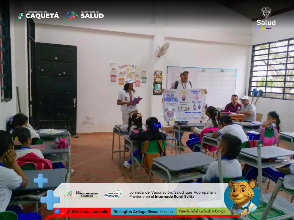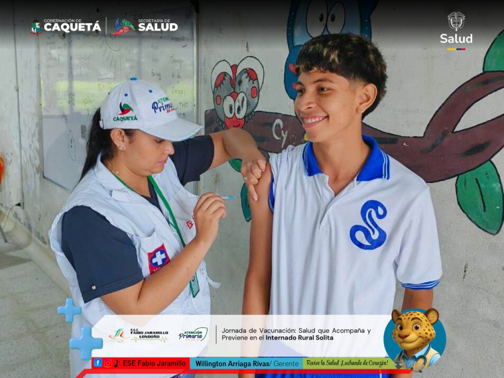 En la Institución Educativa Internado Escolar Rural Solita, el equipo APS de la ESE Fabio Jaramillo Londoño llevó una jornada de vacunación que llenó el día de cuidado y prevención .