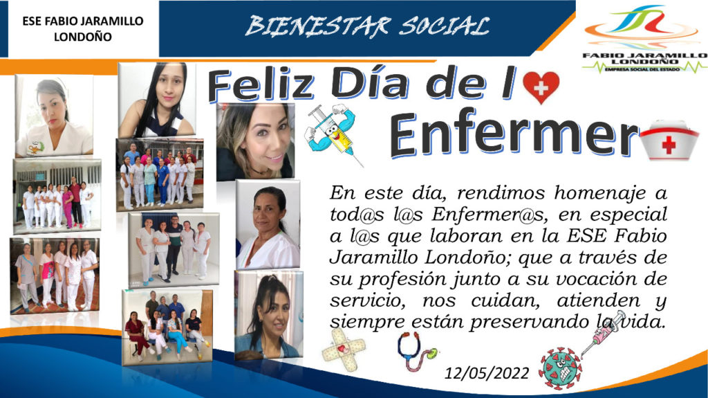 La E.S.E Fabio Jaramillo Londoño, a través del Comité de Bienestar Social rinde un homenaje a todos los enfermeros y enfermeras, que realizan esta labor para toda la comunidad, en los diferentes municipios.