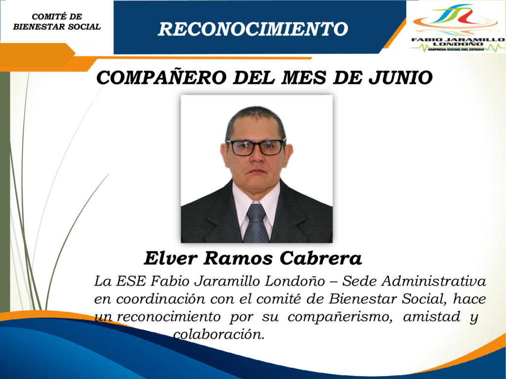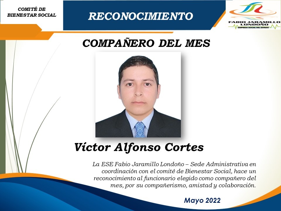 El pasado viernes 27 de mayo fue elegido el funcionario Víctor Alfonso Cortes como compañero del mes de la Sede Administrativa de la E.S.E Fabio Jaramillo Londoño.