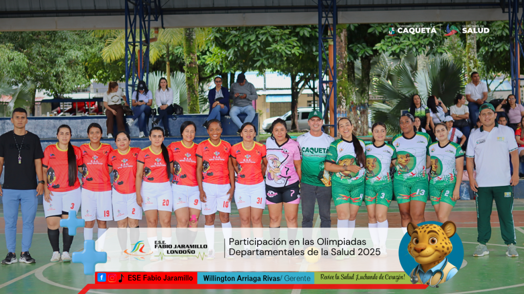 La E.S.E. Fabio Jaramillo Londoño felicita a todos nuestros deportistas por su destacada participación en las Olimpiadas Departamentales de la Salud 2025, un espacio que promueve la integración, el trabajo en equipo y el bienestar de quienes día a día trabajan por la salud de los caqueteños.