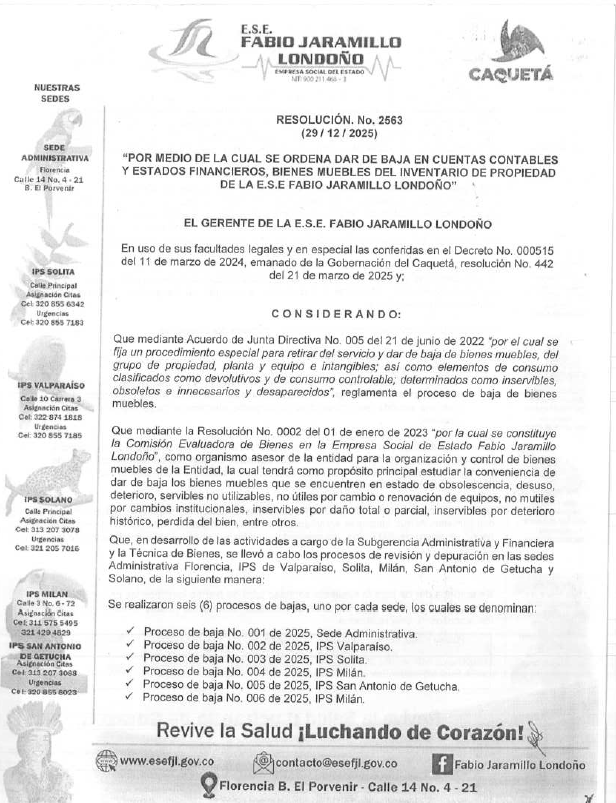 Noticias RESOLUCIÓN No. 2563 DEL 2025 diciembre 31, 2025 VER RESOLUCÍON: https://esefjl.gov.co/wp-content/uploads/2025/12/Resolucion-2563-de-2025.pdf