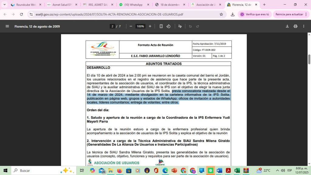 Solita Acta 01 socializacion Política de Participación Social en Salud